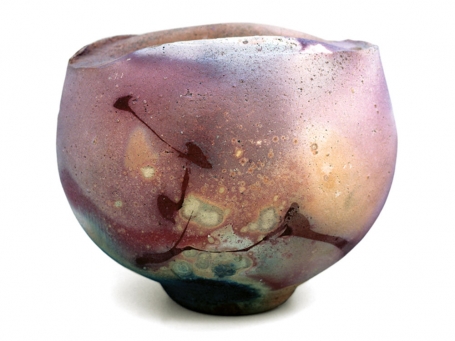 It is ironic that Paul Soldner, who is known for developing "American raku" and low-temperature salt firing, never planned to be a potter. Soldner (b. 1921) was pre-med when he was drafted into World War II. After the war Soldner turned to painting and received a BFA from Bluffton College and an MA in art education from the University of Colorado. At age 33 Soldner went to the Los Angeles County Art Institute (now Otis College of Art and Design) to become Peter Voulkos's first graduate student. For nearly 40 years Soldner taught at Scripps College and Claremont Graduate School in California-he divides his time between California and Colorado, home of the Anderson Ranch Arts Center he founded. Soldner's work is motivated by curiosity. "Pushing boundaries and exploring something new gives me energy," he says.