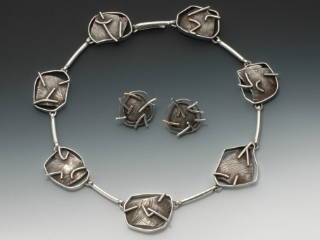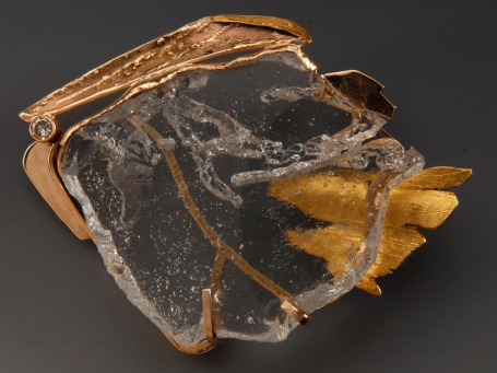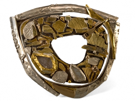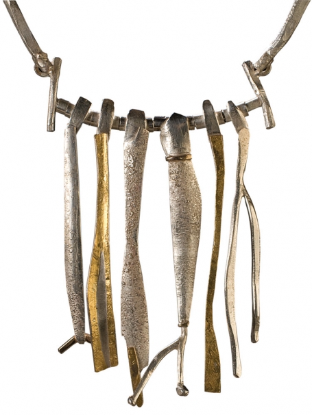 A full-time studio goldsmith in New York City for more than four decades, Glenda Arentzen (b. 1941) has produced jewelry notable for its expressive and sensuous qualities. A graduate of Skidmore College (BS. 1962) and Teachers College, Columbia University (MA 1964), Arentzen also studied metalworking as a Fulbright scholar in Denmark. She has taught at the Fashion Institute of Technology and Haystack Mountain School of Crafts, among other places. Her proficiency in many techniques, including casting, marriage-of-metals and gemstone-setting, serves an artistic vision that captures the freshness of drawing and respects the role of the wearer. "My work is a response to a variety of moods and persons and ideas," Arentzen has said. "Life is an adventure, and body ornament can be one record of it."