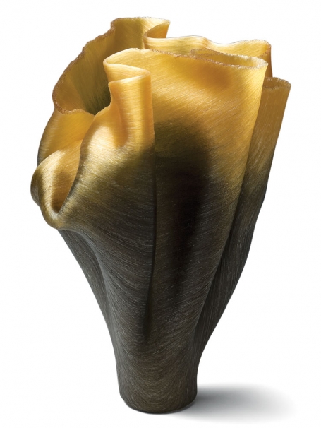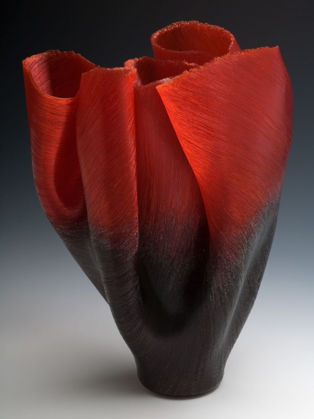 In 1982 Toots Zynsky (b. 1951) began developing filet-de-verre, a groundbreaking technique in which glass threads are pulled from hot glass canes. Zynsky, who received her BFA from the Rhode Island School of Design in Providence (where she now lives), was also among the founders of the Pilchuck Glass School near Seattle and the Experimental Glass Workshop (now UrbanGlass in Brooklyn, New York). Her luminous vessels have garnered critical acclaim, and she was the first contemporary glass artist to have a piece commissioned by New York's Museum of Modern Art. "The astonishingly iridescent bowls of the glass artist Toots Zynsky evoke a sense of wonder," critic Arthur Danto once said, "in part because of their beauty, in part because of the craft that she so evidently commands."