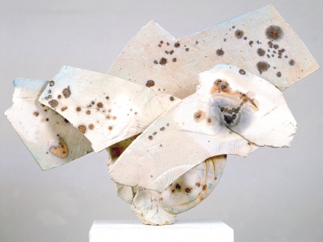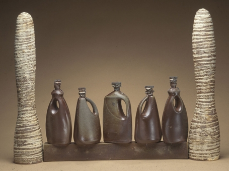 English-born Tony Hepburn, now based in Chicago, recently retired as head of ceramics at Cranbrook Academy of Art in Michigan and formerly headed the department of art and design at the New York State College of Ceramics at Alfred University. Hepburn (b. 1942) studied art at Camberwell and London University and first became known in the U.S. by writing for Craft Horizons, the predecessor of American Craft. Hepburn's work, often regarded as conceptual, responded to pottery and rural America during his time at Alfred and to technology and measurement in Michigan. He says, "I have never wanted my work to be visually coherent or stylistically linear; the world changes, so too does my work....The mediating condition that resists confusion is the choice of clay as my... filter through which things pass."