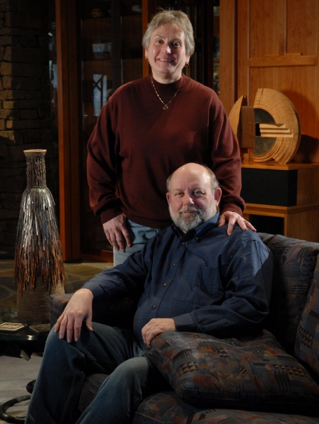 National leaders in the support of contemporary crafts in a range of mediums, and notable encouragers of craft scholarship as well, Robyn and John Horn are also involved in creative work of their own. Robyn is a sculptor who works wood with a chainsaw, and John is a letterpress printer who has taught at Penland. They are founding members of the Collectors of Wood Art, and Robyn holds advisory positions with the Arkansas Arts Center, the Wharton Esherick Museum in Pennsylvania and the San Francisco Museum of Craft + Design. The Horns have been collecting crafts and sculpture for 25 years; a book, Living with Form: The Horn Collection of Contemporary Crafts, featured their collections and the house near Little Rock that they built to showcase the works.