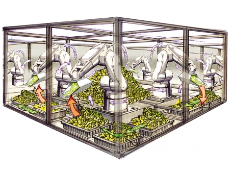 Though LaVerdiere possesses the hand/eye skills to make many of the fantastical objects himself that he's able to conceive and draw, he now contracts scenic shops to fabricate his designs and can direct them to achieve the exacting detail required. In these sets he combines found objects, kitchen accessories and industrial and construction supplies in a seamless concoction that may not exist in the real world but still seems recognizable. For one client, a cosmetics company, he created from existing hard-ware, electronics and custom-machined parts the facade of a hidden safe that looks so real you wonder what it contains.