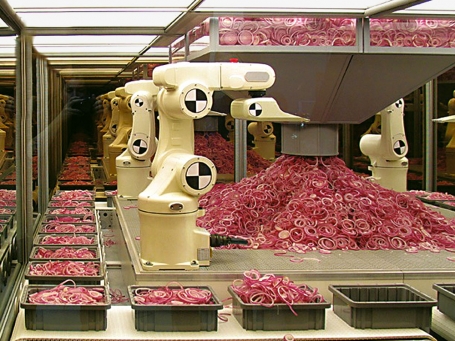 Now, beginning with delicately detailed drawings that have a life of their own, LaVerdiere creates entire sets or key figures in an imagined world, often in fractional scale to the finished image. A rocket device the size of a car appears on film to dwarf a house; a vast sandwich factory springs from props and mirrors in a four-foot cube. In this last set, even after the line between reality and reflection was disclosed, the illusion persisted with a stubborn veracity.