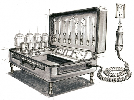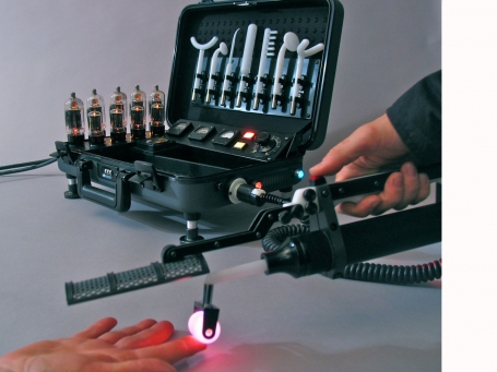 Lying seductively on LaVerdiere's desk as I concluded my interview was an ultraviolet-ray machine (an early-20th-century medical cure-all) that he was in the process of combining with 1950s vacuum tubes and more recent electronic parts to become a brainwashing machine in a forthcoming Matt Damon film, The Adjustment Bureau . We are supplied with enough visual cues to ground us but left clueless as to what's going on inside the device; thus the trap is set for the suspension of disbelief. With his uncanny eye, LaVerdiere resides comfortably in this dichotomy, preferring to engage the almost real, the barely plausible and the totally imagined in a single frame.