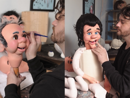 Lovik's father, a teacher who originally began making puppets as a way to communicate with his students, had made a wide range of figures, from elaborate sock versions to puppets in a can to ventriloquist dummies. These dummies are now Lovik's focus, and his business—Lovik’s Puppets—has since become a supplier to amateur and many professional ventriloquists, such as Terry Fator, a Las Vegas headliner and a winner on America’s Got Talent.