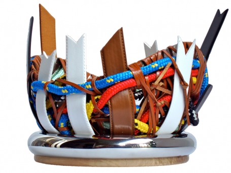 No one mixes it up better than the Brazilian designer Rodrigo Almeida, who brings South American pizzazz to the furniture he constructs in a riot of forms and colors from such items as plastic laundry baskets, backpacks and sneaker fabric. Almeida's work is noted for its absorption of different cultures-African, Brazilian, Indian-and its affinities in shapes with Italian Memphis-era design.