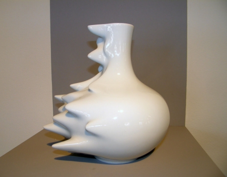 This degree of experimentation with forms could accelerate, Silverman speculates, as artists and designers become more proficient with powerful new digital tools, such as rapid prototyping. Allowing artists to turn computer-designed models into three-dimensional forms, these technologies are eliminating traditional divisions of labor and moving rapidly toward giving industrial designers a level of direct hand control that was unimaginable in Leach's time. It isn't difficult, for instance, to imagine Dror Benshetrit's Phases Porcelain Vases of Phases-fractured-looking black-matte vases molded from pots that were broken apart, then reassembled and cast-being digitally produced directly in three dimensions. What remains to be seen is, will the power behind the intuitive ease of things like the iTouch, iPhone and iPod one day make studio ceramists want to extend their search for new ceramic forms with an iPot?