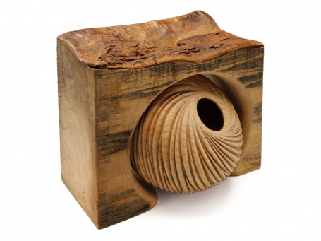 William Hunter (b. 1947) entered the field of contemporary turned-wood sculpture in its formative era, the 1970s, and found his way as a self-taught artist. A native of Long Beach, CA, he moved to El Portal in 1973. His early forms exploited the expressive potential of various woods and advanced a new direction for the field: away from traditional woodturning practices toward artistic invention. From 1970 to 1990, Hunter created elegantly proportioned vessels on the lathe. In the next decade, he began to explore more open forms, penetrating the surface of the vessel. His work eventually evolved into abstract interlocking forms. Now a resident of Los Angeles, Hunter was a founding director on the boards of the American Association of Woodworkers and the Wood Turning Center. He received the Lifetime Achievement Award from the Collectors of Wood Art in November 2006. The following year, the Long Beach Museum of Art organized a 35-year retrospective of his work, an exhibition that toured nationally. His work is now in the collections of more than 25 museums across the country, and is chronicled in Transforming Vision: The Wood Sculpture of William Hunter 1970-2005. "My motive is to embody an essence of life and growth...without depicting a particular plant, shell, textured shoreline or specific narrative," Hunter says. "By reconstructing various sculptured rhythms, I convey my poetic impressions of the natural world."