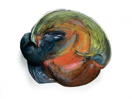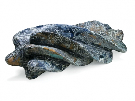 John and Susanne Stephenson have been artists and educators in Ann Arbor, MI, for over 35 years, exhibiting nationally and internationally since the beginning of their careers. John began teaching ceramics at the University of Michigan, in 1959 after receiving his mfa from Cranbrook Academy of Art. While at Michigan, he received the Catherine B. Heller Distinguished Professorship, an honorary doctorate of arts from Grand Valley State, in Grand Rapids, and also served as interim dean of the School of Art Susanne also completed her mfa at Cranbrook, then began teaching at Eastern Michigan University in 1963. The recent work of both Stephensons explores aspects of nature: John addresses water forms in his clay waves, while Susanne has begun integrating paper pulp and string to add texture to her terra-cotta landscape abstracts. "The clay form for me is a gesture which carries color in the thickly applied slips," Susanne says. "This is the means of my expression."