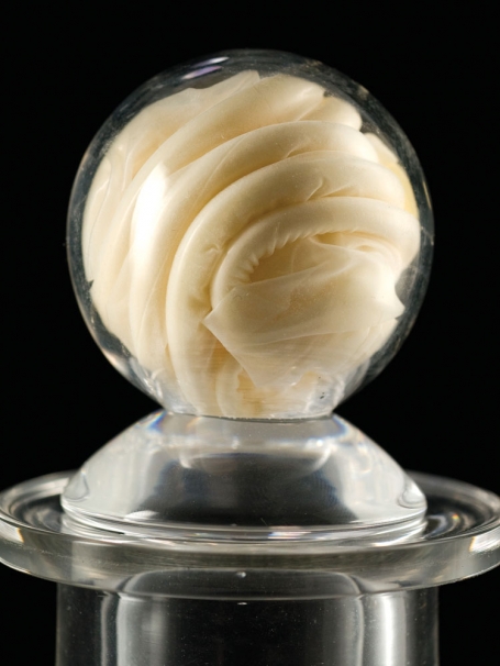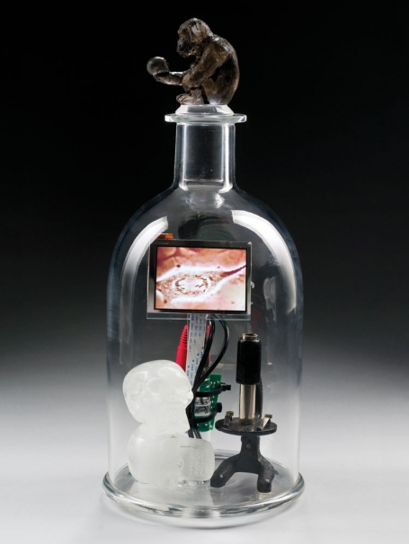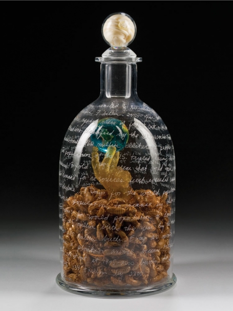 "I posted a cat - playing a piano - on Facebook," he volunteers. "I'm not proud - I thought it was cute, and I don't care who knows." In response to said viral video, the chief curator at New York's Museum of Arts and Design posted a comment, joking that he ought to have that cat perform at his museum. Tate pounced, pitched an idea, and, as he tells it, had a slot within 24 hours in MAD's "Dead or Alive" exhibition, a prestigious 2010 showcase of artists incorporating organic materials in sculpture and installation. Tate contacted Petrovic - another artist working in glass, a friend, and a mentor of sorts - and he agreed to collaborate. Apothecarium Moderne, a set of nine cures for modern ills in domed glass reliquaries, was born. Seven Deadly Sins was lurking just around the corner.
