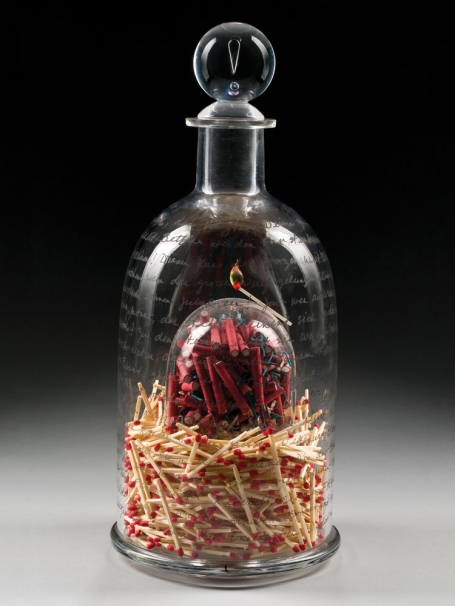 The two men first met at Penland School of Crafts in 1992. Tate - young and hungry for a glass education that wasn't available back then near his home turf of Washington, D.C. - says he trailed Petrovic "like a puppy dog," taking every class he taught. "He trained me to think in that Joseph Cornellian way that he and I both love to do, with cabinets and strange curiosities," he says. (In contrast to Tate's frenetic energy, Petrovic is calm, reflective, more subtle in his humor. "Tim holds me to blame for his methodology," he says, adding wryly that he hopes it's working "because that's a lot of weight to carry.")
