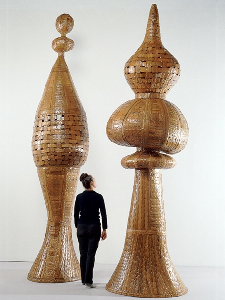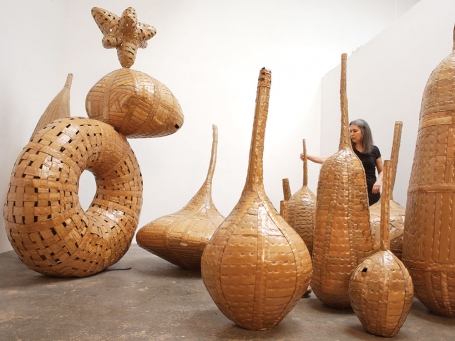 Weber explores these big ideas in her often enormous sculptures, biomorphic forms that have towered as high as 16 feet. In her show "Love and Other Audacities" at Los Angeles' Craft and Folk Art Museum (through September 11), she captures the complex dynamics of a marriage ceremony in The Wedding Party (2009), a tableau of familiar figures dominated by a 7-foot Bridezilla and her even more imposing mother. Prose & Kahn (2010) depicts a voluptuous, three-bellied pregnant woman looming over a slightly cowed man, a comment on gender roles. "Right now I'm doing a piece where the daughter is huge and the mother is tiny," says Weber, who calls her approach "psychological, neither abstract nor representational but something in between."