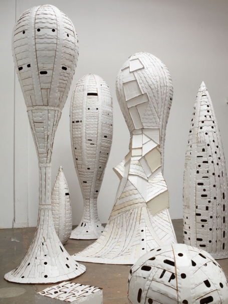 In 1991 she moved into a new studio and, once unpacked, found herself eyeing stacks of flattened boxes. If architect Frank Gehry could make innovative furniture out of cardboard, she figured, why couldn't she make sculpture? "It was a eureka moment," she says.