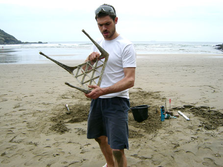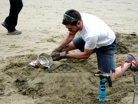 Apart from ingots of pewter, a camping stove, his mother’s old pots and a metal stick for sculpting, his tool on the beach was a feeling of irritation. “I’d been to a couple of foundries—incredible places—and looked at the sand-casting process. I really wanted to do something there. It was a reaction to being unable to afford those processes—going to them and having them laugh at me, saying I’d have to make thousands for them to even consider the job. But then I thought, I’m from Cornwall, I’ve made sandcastles,” he says, obstinately.