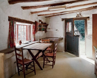 Poor was able to purchase part of an old farm—bought jointly with Rollo Peters, a Shakespearean actor, and the textile designer Ruth Reeves and her then husband, the economist Leland Olds—for $500 (a sum, it should be said, impossible to raise without supportive parents back home in Kansas). With little left over for building supplies, the couple found much of what they needed on their modest acreage. A sandstone quarry, periodically tapped by local farmers for the builders of New York’s brownstones, supplied the basic building material, hauled down the hill with his Model T: smallish cast-off stones for the walls and larger ones blasted and cut with which Poor constructed fireplaces, thresholds, staircases and a stone sink. American chestnuts, blighted five years prior, stripped of their bark but still standing and by then well-seasoned, provided ample timber, which Poor felled and adzed into the massive beams, lintels and posts.