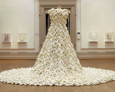 This mission will be extravagantly on display in the museum’s inaugural exhibition in late September, curated by Lowry Sims and David McFadden and titled “Second Lives: Remixing the Ordinary.” Forty artists from 17 countries have used ordinary, discarded objects as their raw materials, for example, making a cocktail gown from dishwashing gloves (Susie MacMurray), a necklace from gun triggers (Boris Bally), a chandelier from hypodermic needles (Andy Diaz Hope and Laurel Roth) , tapestries from liquor bottle foil (El Anatsui) and a portrait from black plastic combs (Sonya Clark).