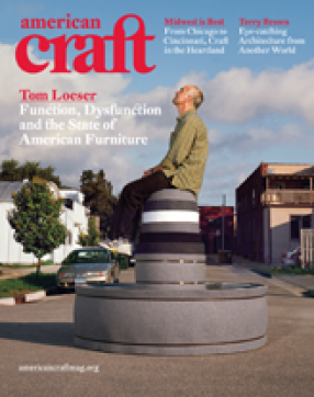 This chance meeting was the icing on the cake for the issue you hold in your hands. The Midwest theme has been percolating for over two years, ever since the Chicago-based architect Brad Lynch began urging me to speak to Karen Johnson Boyd of Wisconsin, a tireless advocate for the American studio craft movement (“Karen Johnson Boyd and the Art of Stealth Philanthropy,” page 46). The idea picked up steam after I visited Detroit’s College of Creative Studies in 2007 and had the opportunity to meet Paul Kotula, a mainstay of the Motor City art scene (“Paul Kotula on Design, Ceramics & Surviving in the Motor City,” page 56). But the issue really began to take shape after speaking with Tom Loeser, a Madison-based furniture maker whose new work offers a perspective on not only the Wisconsin woods, but American furniture making in general (Tom Loeser: Taking Creative License , page 64).