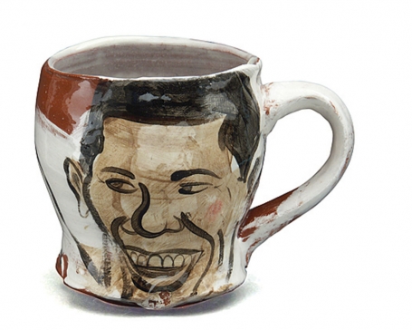 One Obamaware artist, Donna Flanery [figure 3], summed it up well when she said of her pieces, echoing Garth Clark’s comment on narrative teapots: “The idea is to portray Obama as friendly and personable. Having tea with someone is an act of giving them your attention. The cups are intended to be functional and to provide the viewer with the feeling that they are attending a tea party—that they can have tea with the president.” By purchasing a piece of Obamaware, a person engages in this kind of metaphorical intimacy (combined, perhaps, with the feeling that the mug or bowl is akin to a piece of fantasy White House china). Buyers are
