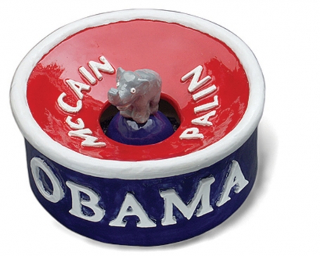 Obamaware spittoon, 2008, clay {h. 4.5 in, w. 10.5 in, d. 10.5 in}.