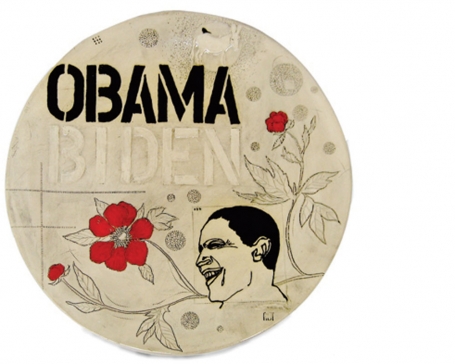 Obamaware platter, 2008, stoneware, glazes, hand-painted {h. 1.5 in, dia. 17 in}.