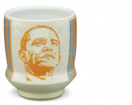 Obamaware cup, 2008, earthneware {h. 4 in, w. 3/5 in, d. 3.5 in}.