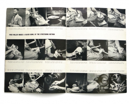 In the December 1956 issue of Craft Horizons, silversmith Frederick A. Miller demonstrated the technique of “stretching” in creating free-form silver bowls.