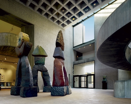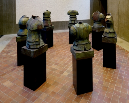 Although most of the exhibition is mounted in two of the main, white-box galleries, various works are sited throughout the Everson’s three levels. Several of the most assured sculptures are placed so that they interact with the museum’s architecture, a monolithic structure designed by I. M. Pei that features bush-hammered, poured-concrete walls and granite-aggregate flooring. Works like Triad, Legacy and Safety in Numbers are enhanced through dialogue with the building’s geometry, palette and texture.