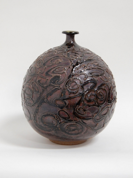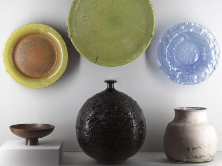 Familiar with these works and the lovely story behind them, the Huntington curators went to see Maloof in 2008 and asked to borrow them for the Scott Galleries. He agreed, and as a complement, also loaned from his personal collection a group of important pieces by studio craft masters—ceramics by Paul Soldner, Gertrud and Otto Natzler, Laura Andreson and Harrison McIntosh, a glass plate by Glen Lukens, a turned-wood vessel by Bob Stocksdale.