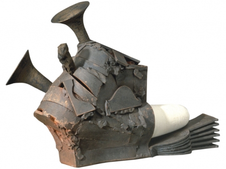 English-born Tony Hepburn, now based in Chicago, recently retired as head of ceramics at Cranbrook Academy of Art in Michigan and formerly headed the department of art and design at the New York State College of Ceramics at Alfred University. Hepburn (b. 1942) studied art at Camberwell and London University and first became known in the U.S. by writing for Craft Horizons, the predecessor of American Craft. Hepburn's work, often regarded as conceptual, responded to pottery and rural America during his time at Alfred and to technology and measurement in Michigan. He says, "I have never wanted my work to be visually coherent or stylistically linear; the world changes, so too does my work....The mediating condition that resists confusion is the choice of clay as my... filter through which things pass."