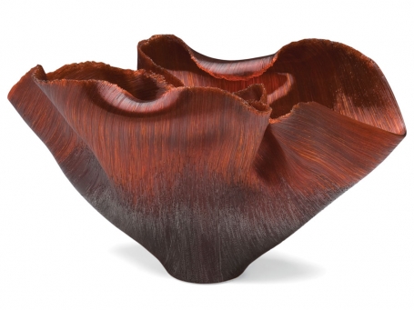 In 1982 Toots Zynsky (b. 1951) began developing filet-de-verre, a groundbreaking technique in which glass threads are pulled from hot glass canes. Zynsky, who received her BFA from the Rhode Island School of Design in Providence (where she now lives), was also among the founders of the Pilchuck Glass School near Seattle and the Experimental Glass Workshop (now UrbanGlass in Brooklyn, New York). Her luminous vessels have garnered critical acclaim, and she was the first contemporary glass artist to have a piece commissioned by New York's Museum of Modern Art. "The astonishingly iridescent bowls of the glass artist Toots Zynsky evoke a sense of wonder," critic Arthur Danto once said, "in part because of their beauty, in part because of the craft that she so evidently commands."