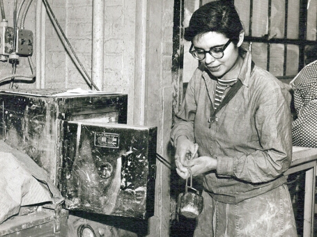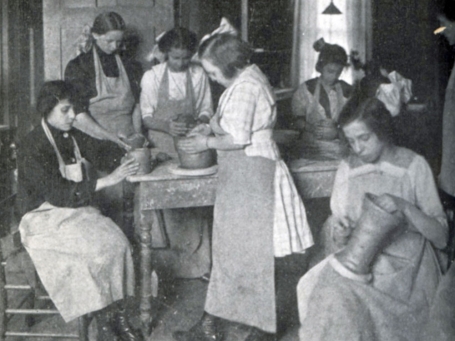 In a century of providing ceramics instruction, Greenwich House Pottery (GHP), located on a picturesque street in New York City’s historic Greenwich Village neighborhood, evolved from a modest program aimed at acculturating poor immigrants and providing training in a marketable skill to a nationally recognized workplace and showcase for contemporary ceramics. Begun in 1909 as a program of a settlement house founded in 1902, the pottery, under its first director, Maude Robinson (from 1911 to 1941), an artist with a Newcomb College background, attracted patronage as well as students from the city’s social elite, and accepted commissions and sold works through a retail shop. Under the leadership of Jane Hartsook (1945-82), GHP moved in 1948 to its current three-story brick building at 16 Jones Street and broadened its reach to attract both postwar youth and more committed artists. On her watch, a who’s who of ceramists made their way to the pottery to teach, lecture or give workshops: Peter Voulkos, Tony Hepburn, Warren MacKenzie, Margaret Israel, Rudy Autio, Jun Kaneko, to name a few. In 1970 Hartsook opened the upstairs gallery now bearing her name, which shows established and emerging artists. The ground floor shop has featured functional work.