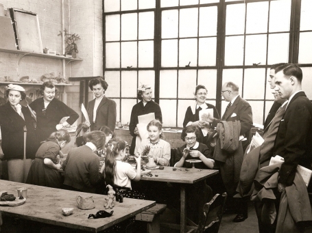 Open all year, the well-equipped facility offers adult classes from basic hand-building and wheel work to more advanced techniques. GHP launched a series of celebratory exhibitions in September with “Who Lives in Greenwich Village?” consisting of a unique ceramic tile map of Greenwich Village with the pottery building at the center, created by Andy Brayman, a former studio manager, and Ayumi Horie. The map has two historic reference points: 1909, the pottery’s founding year, and 1609, the year of Henry Hudson’s voyage, represented by animals and plants that thrived in early Manhattan. Other exhibitions are solo shows of Kathy Erteman and Anat Shiftan. Lectures on historical subjects are also scheduled and, in April, a panel discussion on studio pottery with Glenn Adamson, Howard Risatti and others.