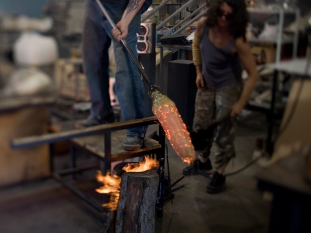 Like their work, Kovel and Parker are creative amalgams. An alumna of Urban Glass in Brooklyn, she comes from a background in painting and sculpture (exhibiting with the likes of Claes Oldenburg, Kiki Smith and Damien Hirst) with forays into the worlds of fashion (designing glass lines for Ralph Lauren and Donna Karan) and culinary arts (working as a pastry chef for 10 years). He learned glassmaking from Italian masters and has had his sculptures shown at the Brooklyn Museum and other venues. In 2007 Time magazine named the duo to its Design 100 list of innovators and tastemakers, singling them out for their commitment to green practices (their electric furnaces are wind-powered and they recycle their excess glass into a line of eco-friendly products.)