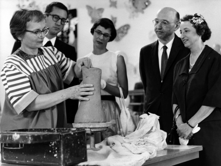 his 97th birthday. Nelson taught from 1956 to 1975 at the University of Minnesota, Duluth, and established the ceramics department there. Besides training scores of potters, he was instrumental in building the ceramics collection at the school's Tweed Museum of Art. His book, first published in 1957 and re- printed in four subsequent editions, remains a timeless reference, offering design and technical guidance for studio potters with an overview of ceramics throughout world history. In 1960 Nelson married Edie McIntyre, secretary to his friend David Campbell, then head of the American Craft Council; she died in 1987.