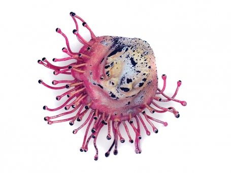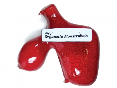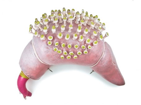 It takes an artist with an edgy sense of fun to make appealing what could be off-putting: sculpture that resembles extracted internal organs, fruity genitalia, cells in the midst of division, and floating umbilical cords.
