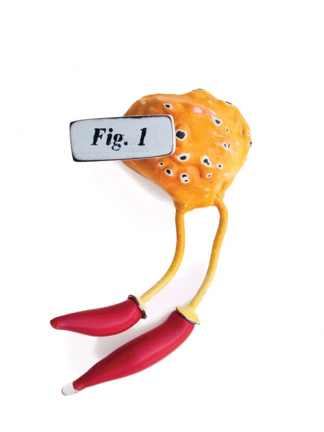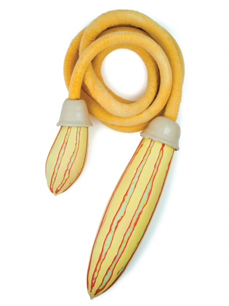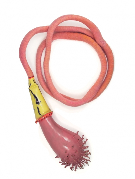 As a final scientific flourish, Moore calls on her own creative taxonomy to label her pieces. There's Goober, for instance, a brooch created in 2009. A neckpiece was dubbed Drupe because, Moore says, "it sounds like what it does." Honorable mentions: Yellow Space Nug, Blue Nurp Ring, and Pale Slurm.