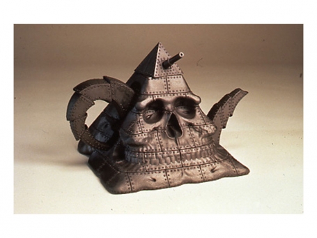 [8/11] Richard T. Notkin, Pyramidal Skull Teapot: military intelligence I (-yixing series), 1989, Stoneware, luster, 6" x 9 ¾" x 7", the skull symbolizes intelligence wasted and misdirected and consequently leading to death.