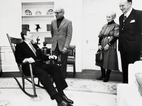 1981: A walnut rocker by Sam Maloof is donated to President Reagan and his family for use in their private quarters at the White House. Maloof's appeal is bipartisan; President Carter and President Clinton are also fans.