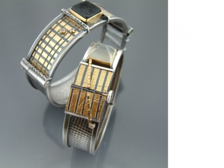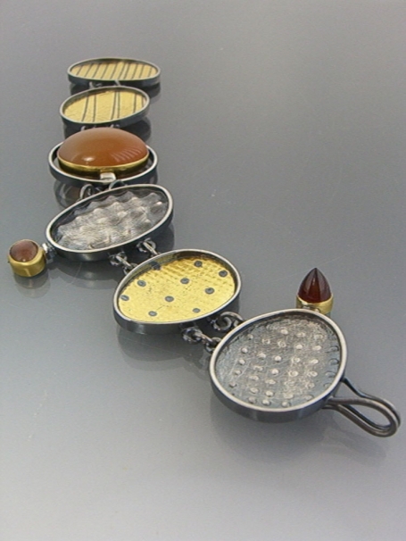 Everything about Kupke-Peyla's jewelry gets a huge "heck yes" from me. I love her creative use of texture and pattern, lending depth to her gold and sterling designs. Her pieces have presence, oomph, and pop, and yet - for works of jewelry with such substance - they're not too heavy at all. It's this sort-of perfectly balanced wearable weight. I covet (yes, covet) a pair of medium-sized hoops my sister purchased from Kupke-Peyla at ACC St. Paul in April.