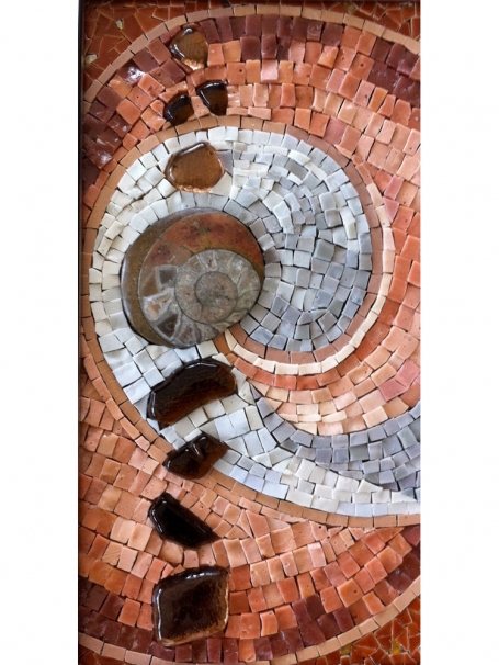 It is indeed daunting and incredibly sustaining to sit with a blank surface trying to find exactly the right shape or rhythm or movement that brings bits of stone, fossil, glass, or porcelain to life in a way that is aesthetically relevant. Amid the sublime satisfaction of creation, there is inevitably a vital bit of delicious suffering involved as I make decisions that seek to carry the life of the piece to the viewer.