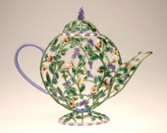 Every day, in the small, picturesque village of Essex, Connecticut, the glass artists Marc Petrovic and Kari Russell-Pool send their two daughters off to school, enter their nondescript 1,700-square-foot studio and work side by side until the children return at 3:00 p.m. The husband and wife, who first met in 1987 at the Cleveland Institute of Art, have worked closely for years, while at the same time maintaining a certain independence that allows them to distinguish one person’s work from the other’s. Russell-Pool’s pieces are predominantly flame-worked, while Petrovic’s are primarily blown and combined with wood, metal or found elements. “Marc’s work is very diverse, as far as style goes, and is for the most part narrative,” Russell-Pool says of their different approaches. “Mine has a definite style and is more readily identified as my own. I also work narratively, but I have a strong decorative side.”