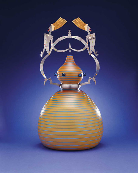 In 40 years of working with glass, the artist Dan Dailey has created a remarkably varied oeuvre—blown vessels and sculpture, narrative Vitrolite panels, figural lighting fixtures, large-scale murals and other commissions. All have been executed with superb technical proficiency and are notable for refinement in the details and, frequently, a playful, even cartoonish humor. Before being plunged into the dramatic presentation of some 400 images of Dailey’s work in this monograph, the reader is primed by the glass scholar William Warmus, who discusses Dailey’s place in the studio glass movement—he is a professor at the Massachusetts College of Art in Boston, where he founded the glass department in 1973—his talent as an often amused observer of daily life, the influences of Egyptian and Greek art on his work and his fruitful association for more than 20 years with the European glass industry, especially Cristallerie Daum in France. Tina Oldknow’s interview with Dailey probes his affinities with Art Deco and Art Moderne, and his comfort working with a staff to execute his work. All the texts, including a statement by Dailey at the end of the book, stress the importance of drawing in generating his projects. “My sketchbooks are full of imaginings born of meditation on various subjects…. What begins as an ethereal wisp in my ‘mind’s eye’ becomes somewhat real as an ink drawing, then very real as an object.” The concluding chronology is illustrated with photos of the artist and his collaborators at work.