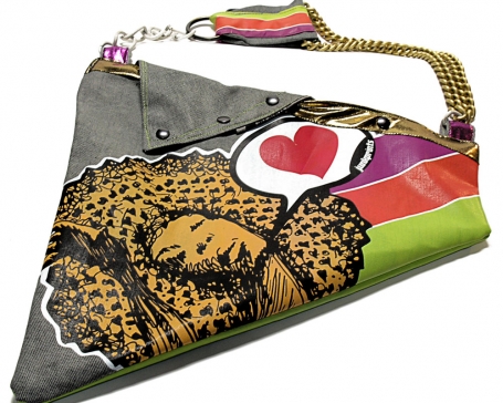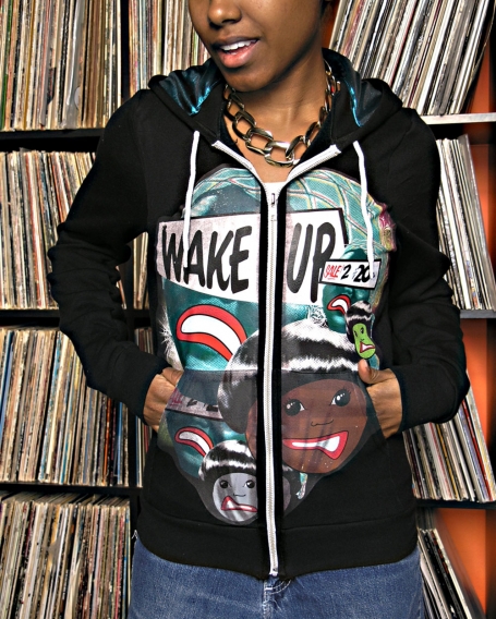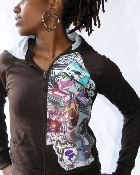 Metcalf’s sharp-witted thinking and his ability to clearly articulate his feelings and observations about the state of craft today (and his ability to rile up an audience as demonstrated by his presentation at the Society of North American Goldsmiths conference this spring) made him an obvious choice for this discussion. Etsy suggested we invite Kennebrew, known for her engaging, playful and socially relevant work that speaks to the themes of stereotypes and social binary opposition. Her t-shirts, hoodies, bags and other collaged pieces are bright, bold, beautiful and seem to have a soundtrack of their own. These two in conversation proved to be immensely insightful and shed lots of light on what’s going on in the world of craft right now.