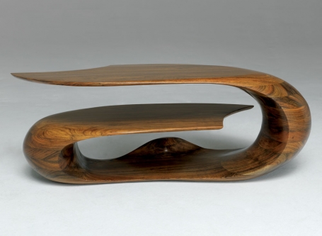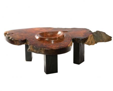 Low table exemplifies his ingenious designs in functional art by incorporating a bowl into the table’s top.