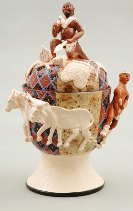 thrown by Lovemore Sithole, sculpted by Vusi Ntshalintshali and Petros Gumbi, painted by Fiko Mfuphi.