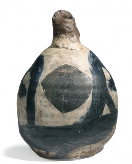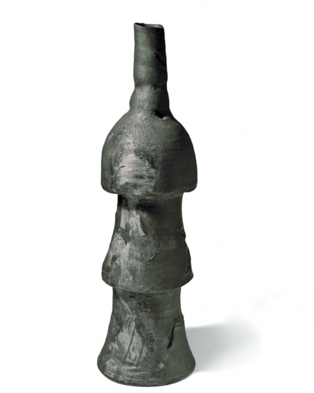 Following the trajectory of Voulkos’s early career, this survey of his work includes high-quality functional pieces such as a 1950s glazed stoneware bowl from the Montana period; a 1957 vase decorated with a “slip stencil” technique and an experimental 1959 stoneware sculpture adorned with slips and glazes, both done at Otis; and several examples of what became a signature form, his Stack pieces— Anaqua, and Ukam, both 1968, and Untitled Stack, 1974, all made while he was teaching at Berkeley.