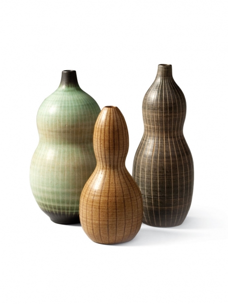 The life and work of Harrison McIntosh, a quiet legend in the rich, often flamboyant history of California craft, is being celebrated in this retrospective covering 60 years of his pottery and sculpture and coinciding with his 95th birthday. Born in Vallejo, California, McIntosh showed a talent for art at a young age and was encouraged by his parents. He was introduced to clay by Glen Lukens at the University of Southern California in 1940. Later, after he had served in World War II, he studied with Richard Petterson at the Claremont Graduate School, attended a Bernard Leach seminar at Mills College and enrolled in a workshop with the Bauhaus potter Marguerite Wildenhain. There was exposure to the Japanese Mingei tradition as represented by Shoji Hamada, whose throwing demonstrations on his famous 1952-53 U.S. tour McIntosh observed. He was also interested in architecture (in the 30s he had helped persuade his parents to have their house designed by the avant-garde architect Richard Neutra) and in the developments in West Coast interior and exterior design in the postwar years.