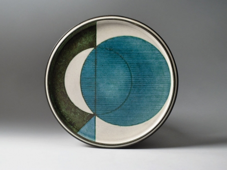 McIntosh set up his first studio in Claremont in 1954 with fellow potter Rupert Deese and proceeded to produce pottery that blended the diverse design and craft influences in his background into a style distinctly his own, characterized by balanced proportions and subtle but graphic decorative elements. He made his technical choices early: a single stoneware body, cone 5 glazes and oxidation firing.