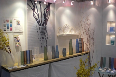 I love the muted color palette and delicate patterning of Penelope Wurr's glass works (booth 1609). "I tend to work with earth tones," said Penelope, in her charming British accent. "I really love subtle colors and textures."