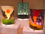 Lauri Wilson makes lovely kiln-formed glass objects. Her table-top lamps are gently curving pieces of it, the lights tucked behind, illuminating the rich ...